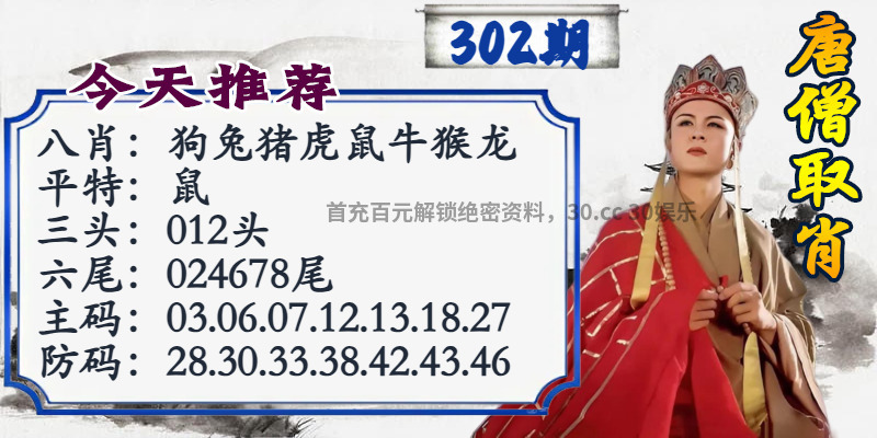 | 307期:单双两肖【单肖+虎猴】开:發00准 |