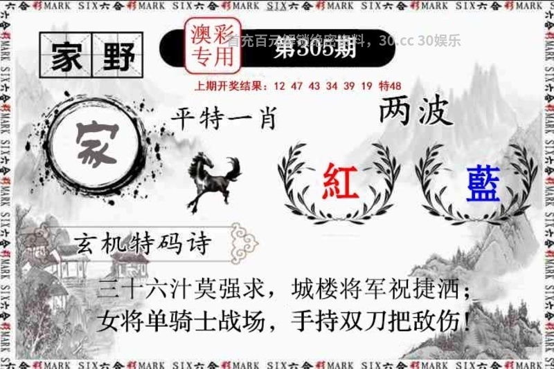 | 304期:琴棋书画【书画棋】开:马48准 |